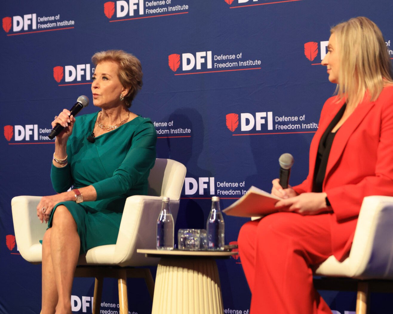 Education Secretary Linda McMahon spoke at a conference Wednesday hosted by the Federalist Society and the Defense of Freedom Institute.