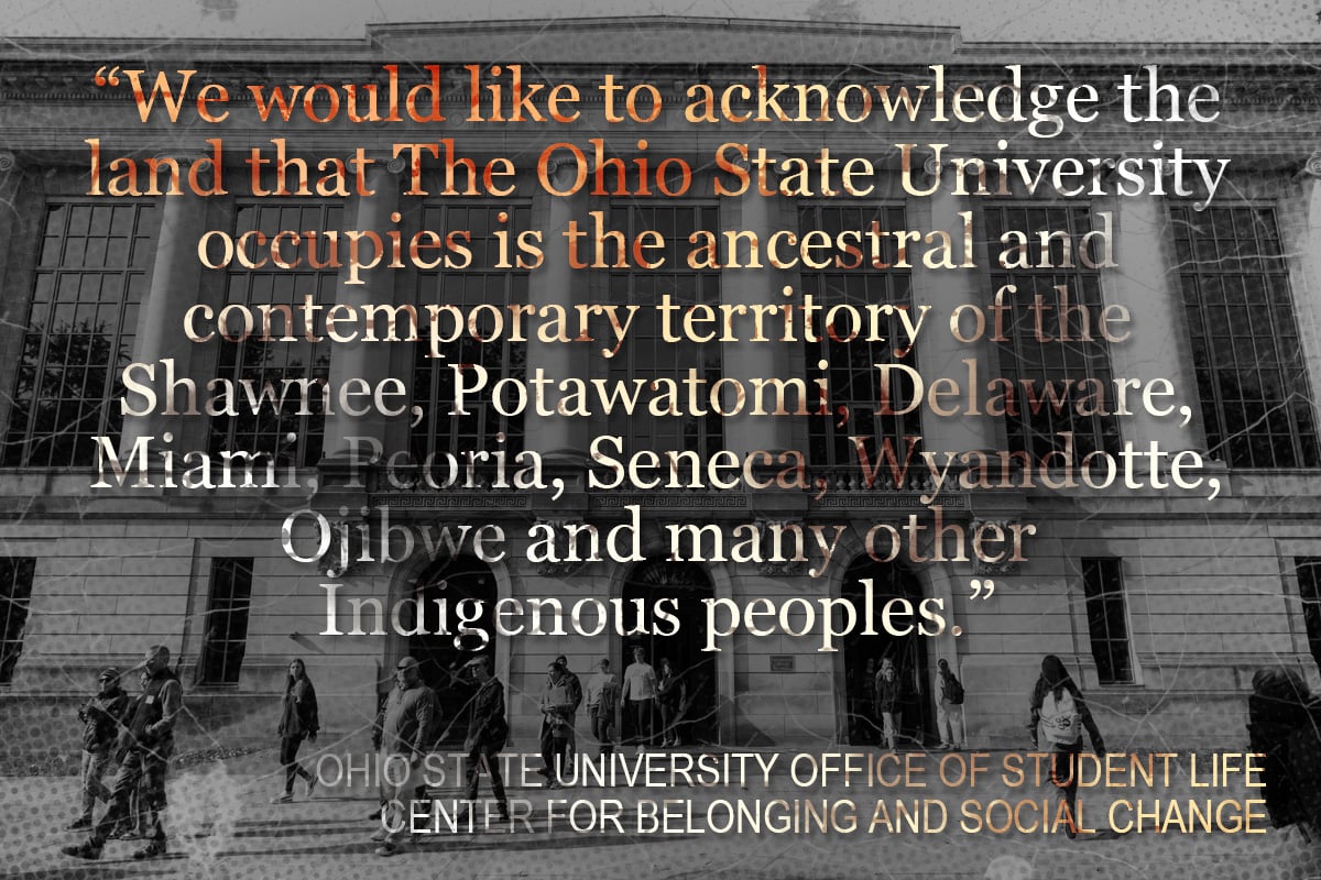 Ohio State never issued a land acknowledgment on behalf of the entire university, according to Johnson. But over the past several years a number of schools, departments and faculty members created their own. For example, the university’s Center for Belonging and Social Change, which was shuttered in April in compliance with SB 1, stated on its website, “We would like to acknowledge the land that The Ohio State University occupies is the ancestral and contemporary territory of the Shawnee, Potawatomi, Delaware, Miami, Peoria, Seneca, Wyandotte, Ojibwe and many other Indigenous peoples. Specifically, the university resides on land ceded in the 1795 Treaty of Greeneville and the forced removal of tribes through the Indian Removal Act of 1830. As a land grant institution, we want to honor the resiliency of these tribal nations and recognize the historical contexts that has and continues to affect the Indigenous peoples of this land.”